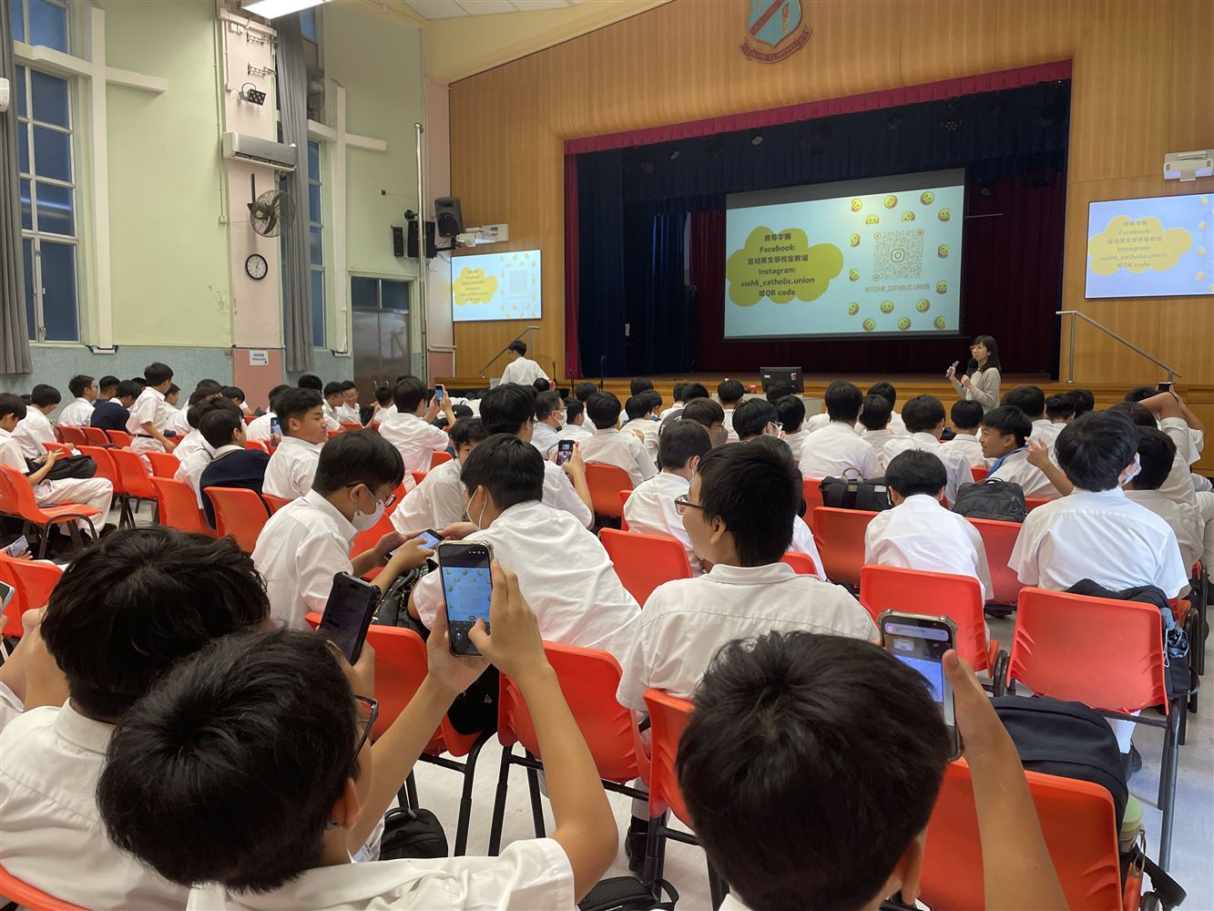During the ceremony, Ms Fung Ho Yan introduced the mentors and objectives of each sodality to the members. She reminded all the members to fulfil their responsibilities and bring positive influences to their schoolmate in both the real and digital world. After all the members took their oath of membership, each sodality held its first group meeting to allow their members to know each other.