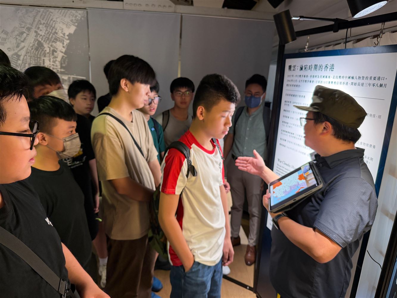 This exhibition showcased, for the first time, a collection of aerial photographs taken over Hong Kong during the war, gathered from various sources worldwide. These images offer a unique bird's-eye view of the cityscape and spatial changes under Japanese occupation. Our students also had the privilege of engaging in insightful discussions with Professor Kwong Chi Man, Head of the Department of History, and Mr. Tsoi Yiu Lun, a military history expert, gaining valuable knowledge and perspectives.