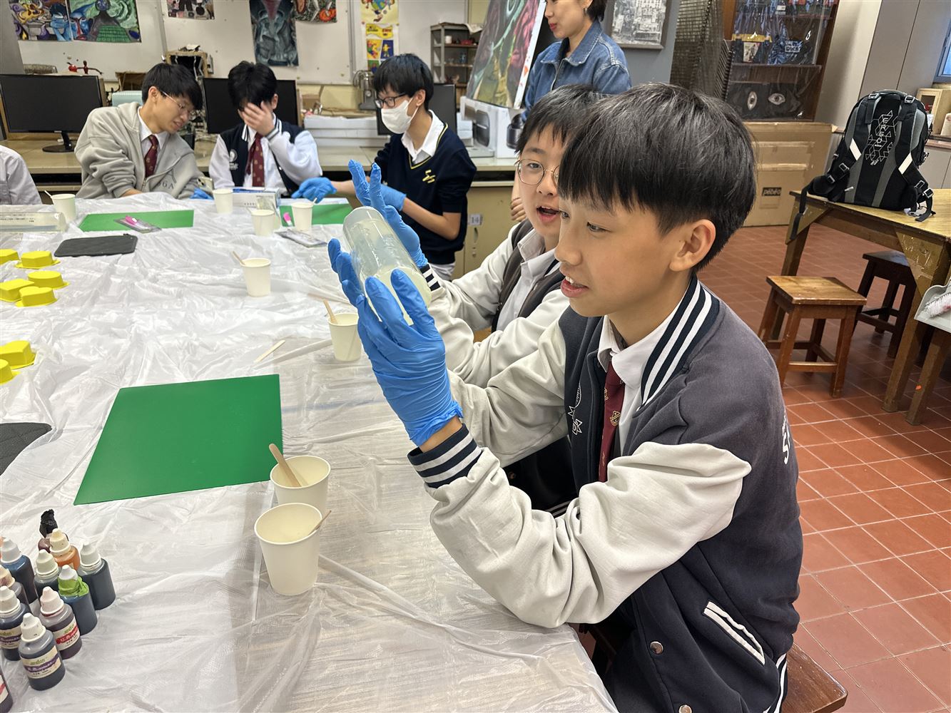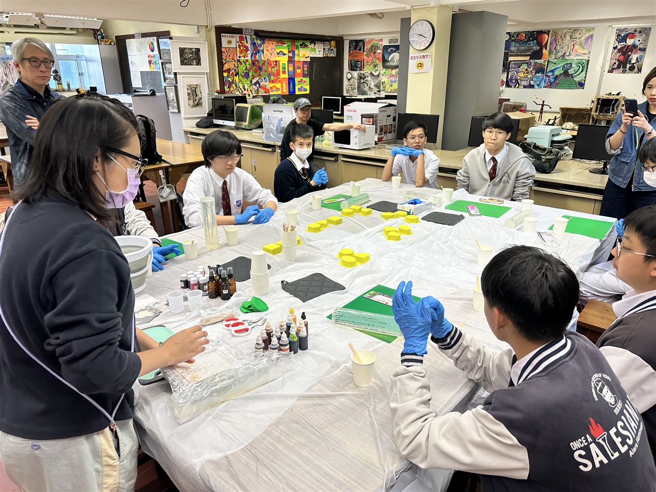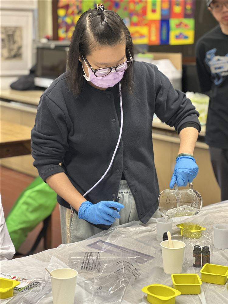 Over two hours of activities time, participating students and teachers began by learning about materials, then step by step mastered color mixing, layering, and shaping. Finally, they were thrilled to unmold their creations, watching the flowing textures and colors within the transparent soap gradually solidify into "jewels". Throughout the process, everyone's focused expressions, shared inspiration, and cheers upon successful unmolding filled the workshop with warmth and vitality.