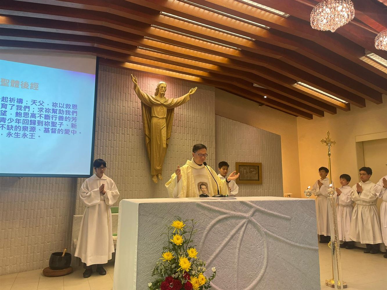Father Antonio Leung addressed the Salesian Pastoral theme of this academic year: "Lighting Hope with Youth in the Online World", reminding students to learn from children's desire for good and to refrain from harming others, especially online bullying or trampling. He encouraged them to instead encourage and praise others. He also invited students to share information about doing good with others, to work together towards good, and to praise others online.
