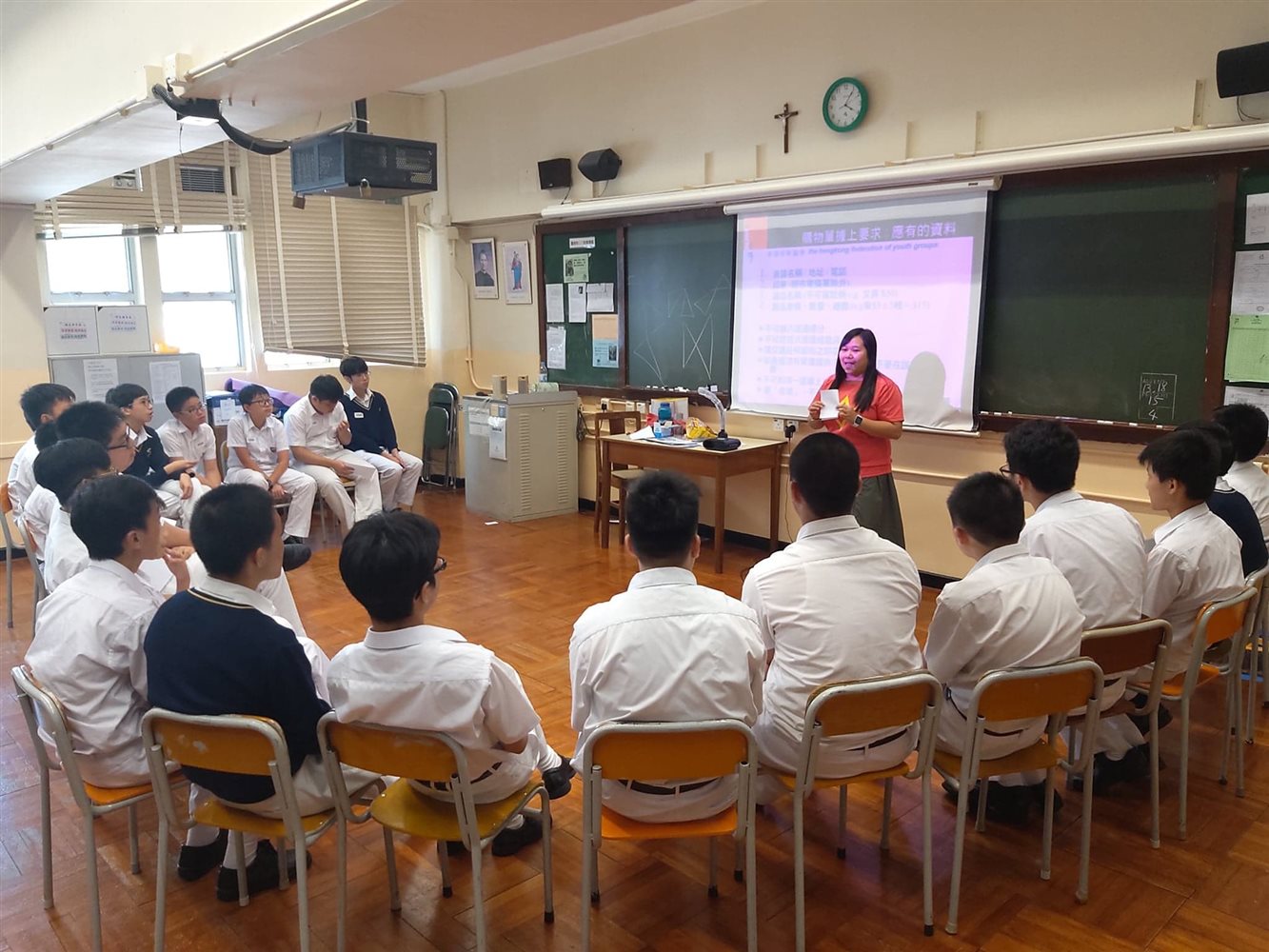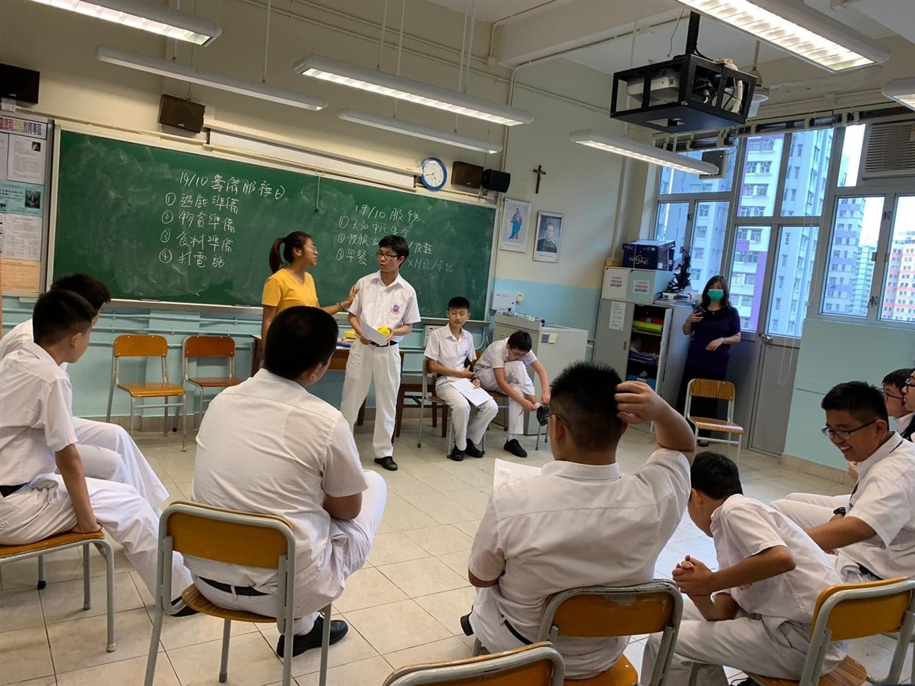 The Charity Service Group organized Charity Service Learning Program for our F.2 and F.4 students. This program provided students with in-school workshops and charity service experience day. We also invited social workers from Jockey Club Shaukeiwan Youth S.P.O.T. of Hong Kong Federation of Youth Groups (HKFYG) to hold the in-school workshops and charity service for our students.