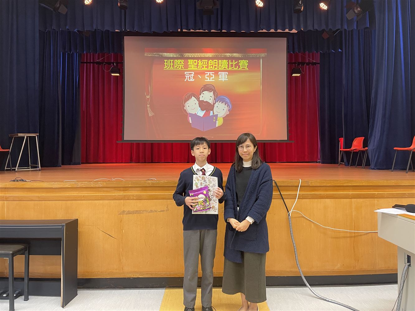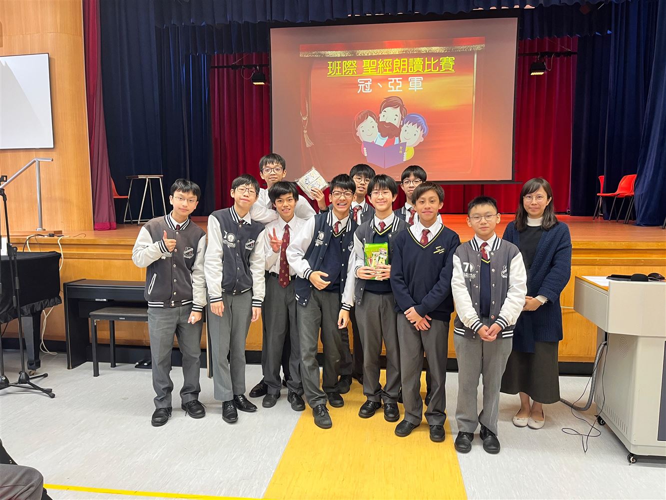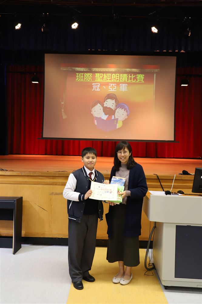 The Secondary 1 inter-class Bible reading competition champion was 1A Lam Chi Him, and the first runner-up was 1B Fung Chung Fong. The secondary 2 champion and first runner up were 2B Yeung Ching Lam and 2C Tsang Pok man, respectively.