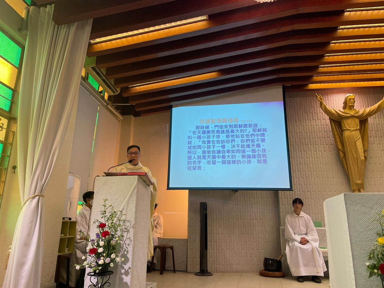 Father Antonio Leung addressed the Salesian Pastoral theme of this academic year: "Lighting Hope with Youth in the Online World", reminding students to learn from children's desire for good and to refrain from harming others, especially online bullying or trampling. He encouraged them to instead encourage and praise others. He also invited students to share information about doing good with others, to work together towards good, and to praise others online.